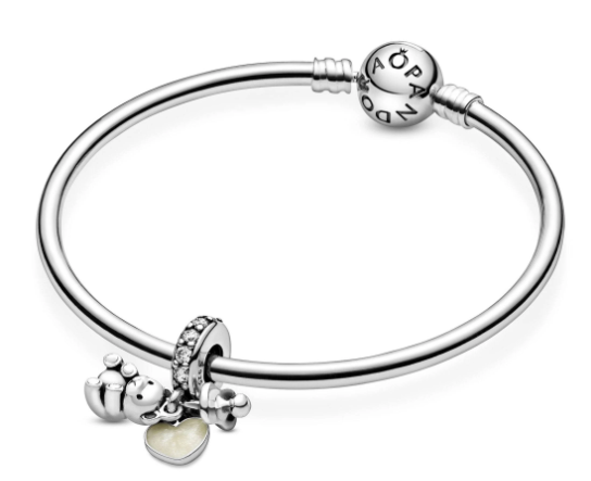 Všechny sladké nezbytnosti pro malého miláčka na jednom oslnivém přívěsku ze sterlingového stříbra. Dudlík, srdce plné lásky a plyšový medvídek jasně září stříbrným smaltem a čirými kamínky kubické zirkonie - ideální ikony pro dárek za miminko nebo osobní připomínku vašeho krásného miminka.