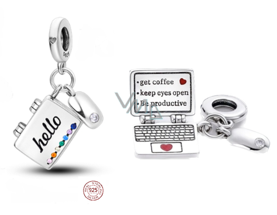 Charm Sterlingové stříbro 925 Počítač + myš, zirkony, 2v1 otevírací přívěsek na náramek zájmy