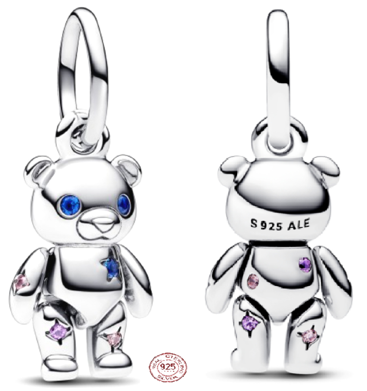 Pohyblivý medvídek vysací přivěsek je vyrobený z Hvězdného prachu a lásky. Tento zcela mimořádný přívěsek s medvídkem je vyroben z kamenů zasazených do tvaru hvězd, inspirovaných Galaxiemi padajících hvězd. Tento stříbrný visací přívěsek s pohyblivými pažemi a nohami je dokonalou připomínkou toho, že všechno je možné. medvídek s modrým umělým krystalem zasazeným do Hvězdy, která představuje jeho srdce, bude zcela mimořádným doplněním vašich nejoblíbenějších přívěsků.
