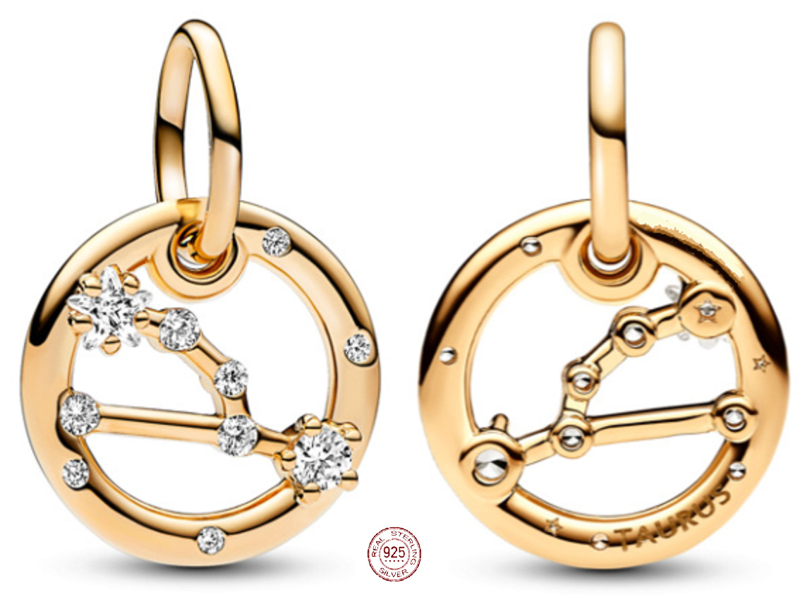 Charm Sterlingové stříbro 925 Pozlacené znamení zvěrokruhu Býk, přívěsek na náramek