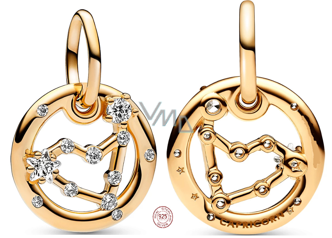 Charm Sterlingové stříbro 925 Pozlacené znamení zvěrokruhu Kozoroh, přívěsek na náramek