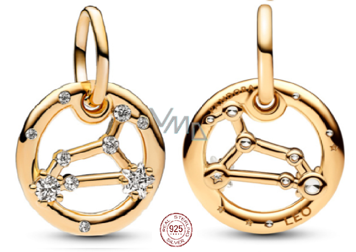 Charm Sterlingové stříbro 925 Pozlacené znamení zvěrokruhu Lev, přívěsek na náramek