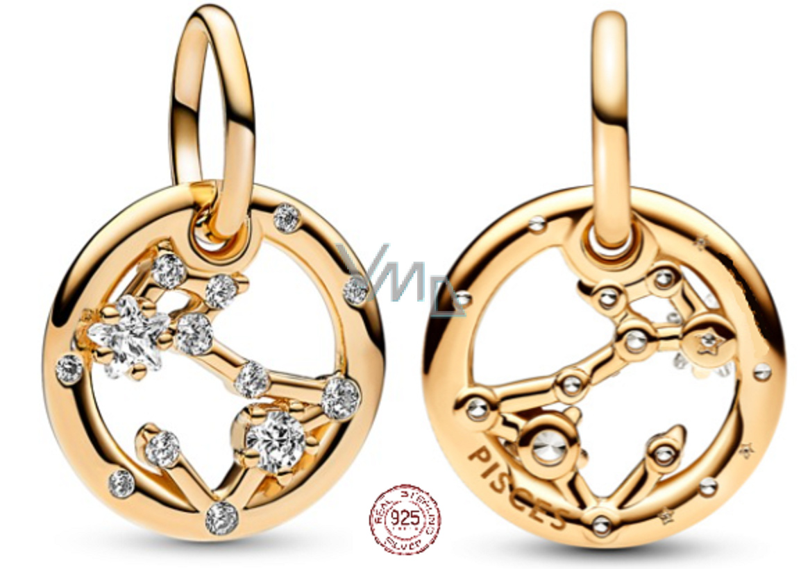 Charm Sterlingové stříbro 925 Pozlacené znamení zvěrokruhu Ryby, přívěsek na náramek