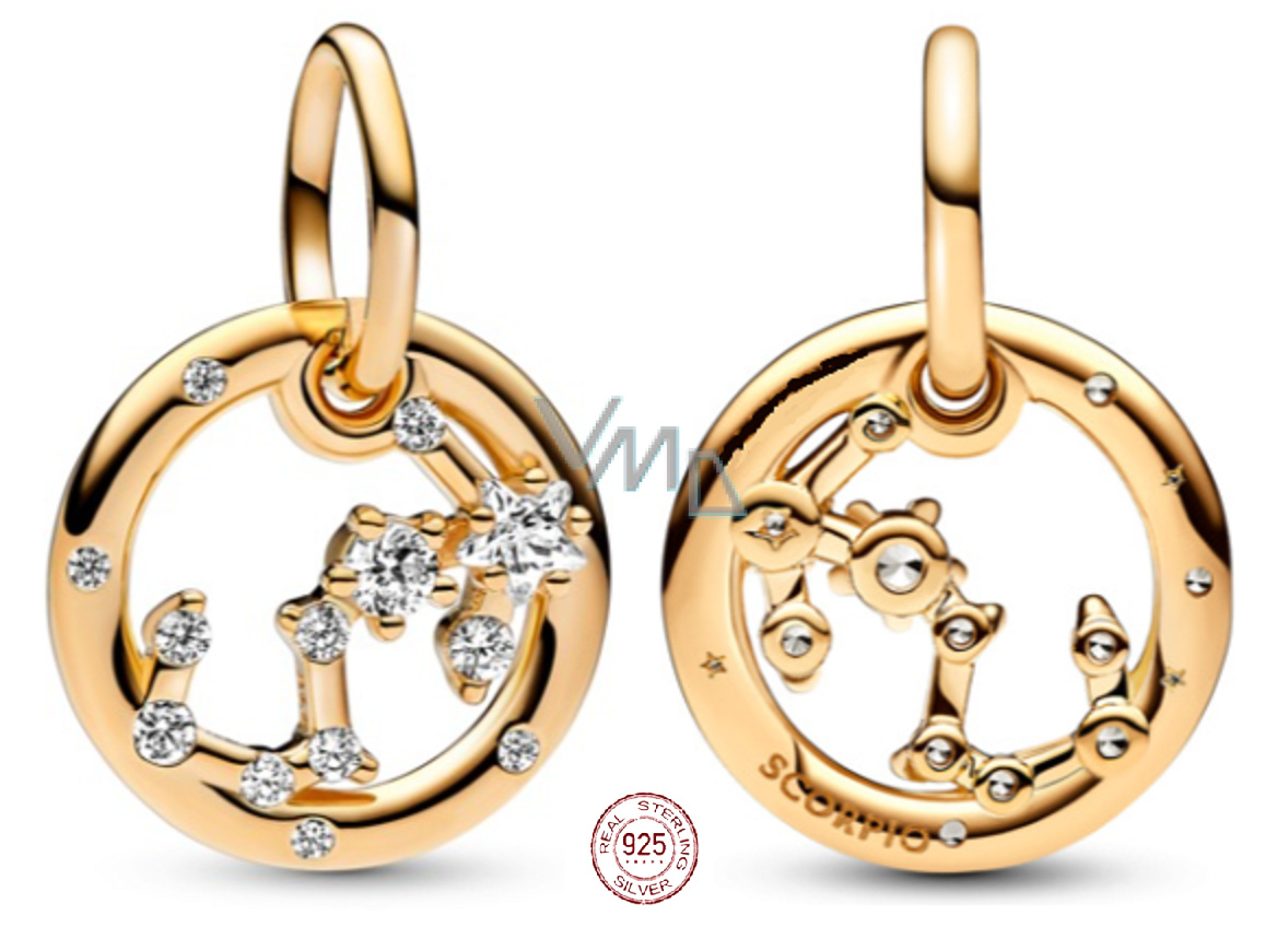 Charm Sterlingové stříbro 925 Pozlacené znamení zvěrokruhu Štír, přívěsek na náramek