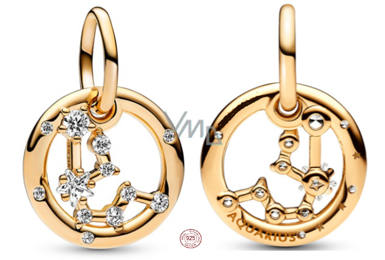 Charm Sterlingové stříbro 925 Pozlacené znamení zvěrokruhu Vodnář, přívěsek na náramek