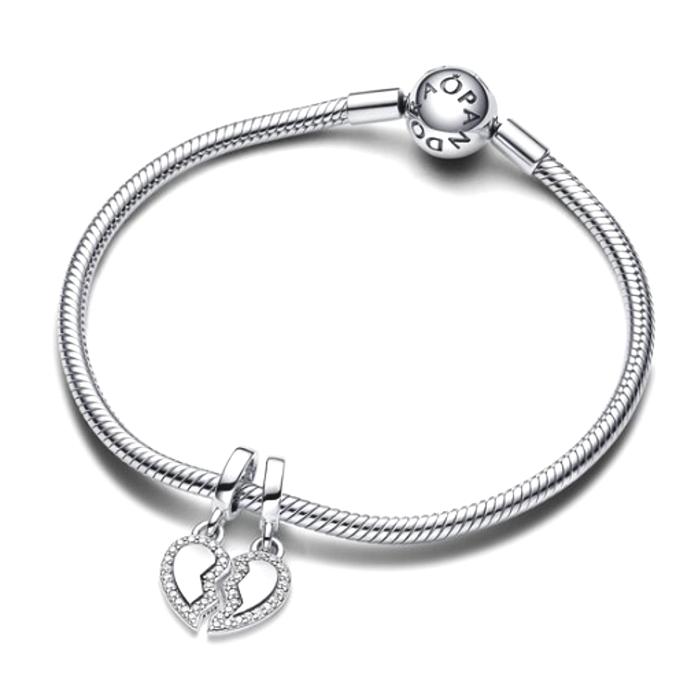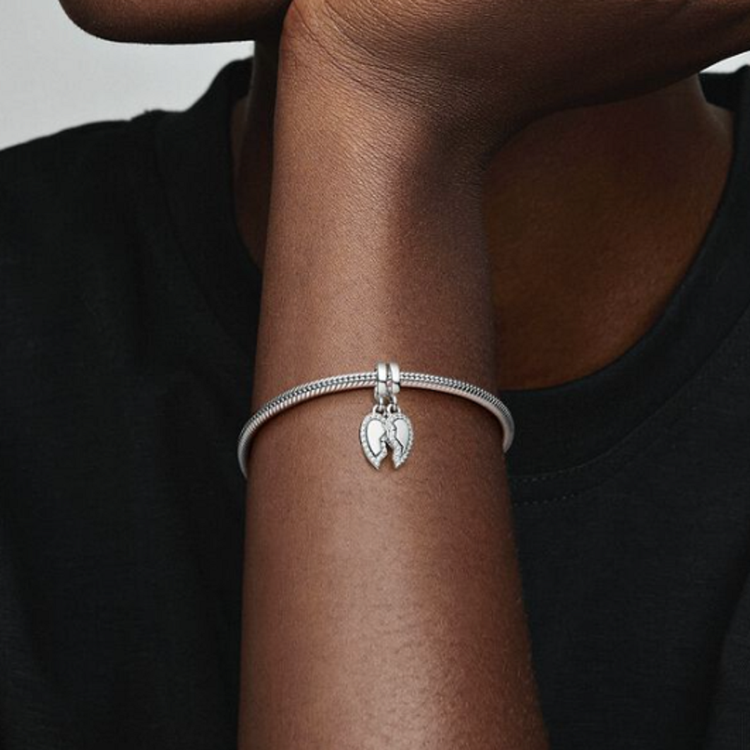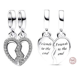 Charm Sterlingové stříbro 925 Přátelé - Rozdělitelné kouzlo se srdcem 2v1, přívěsek na náramek přátelství