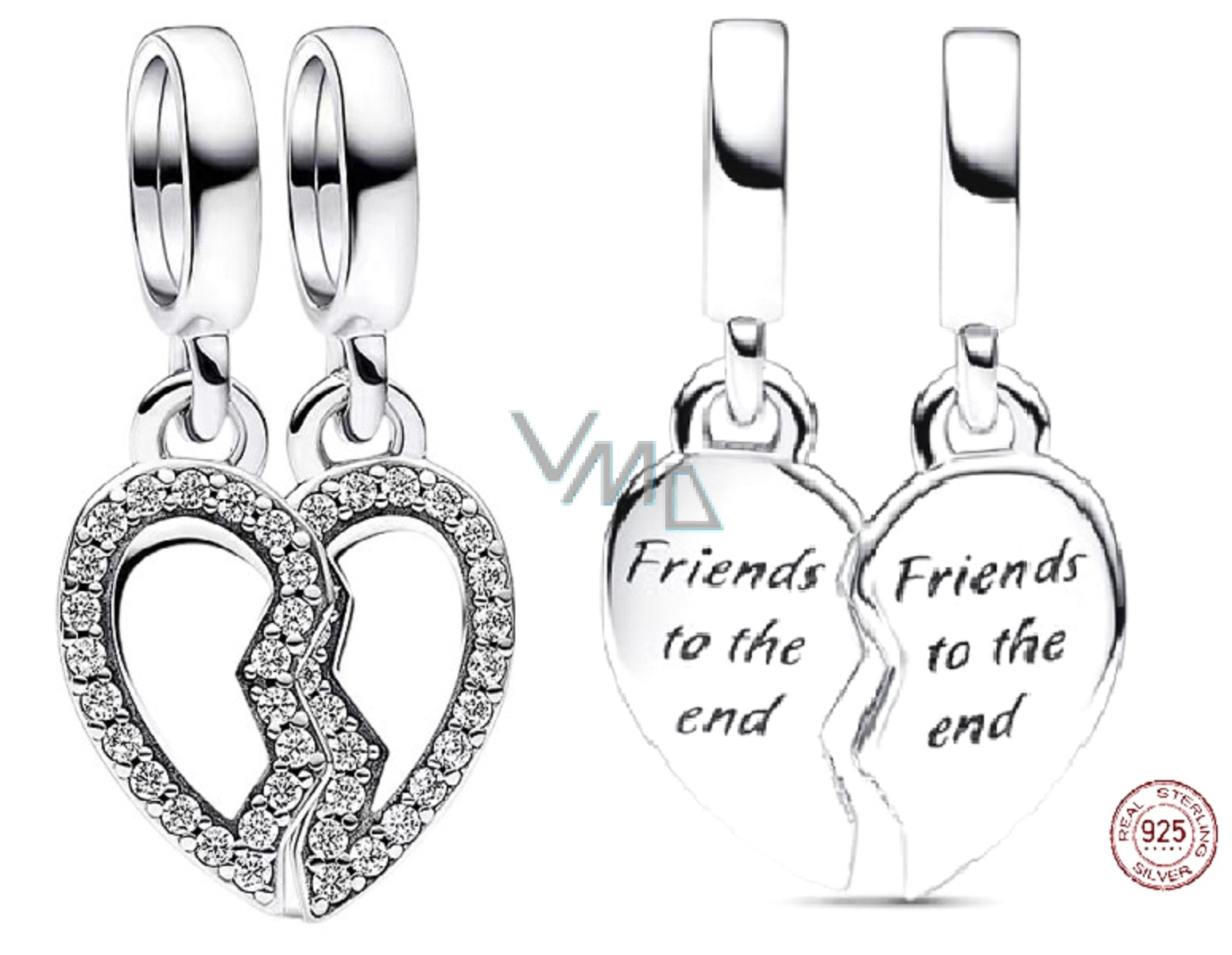 Ukažte jim, že jsou jeden z milionu pomocí přívěsku. Nic neříká, že nejlepší přátelé navždy, tak jako darovat svému nejlepšímu příteli polovinu Stříbrného přívěsku s vyrytým vzkazem „Přátelé až do konce“ na obou polovinách. Obě strany srdce mají leštěný střed s jiskrou podél obrysu. Design ve tvaru srdce má uprostřed prasklinu, která dotváří tvar srdce, když jsou obě poloviny umístěny k sobě. Skvělého přítele je těžké najít, tak toho svého oslavte speciálním přívěskem, který představuje vaše pouto.