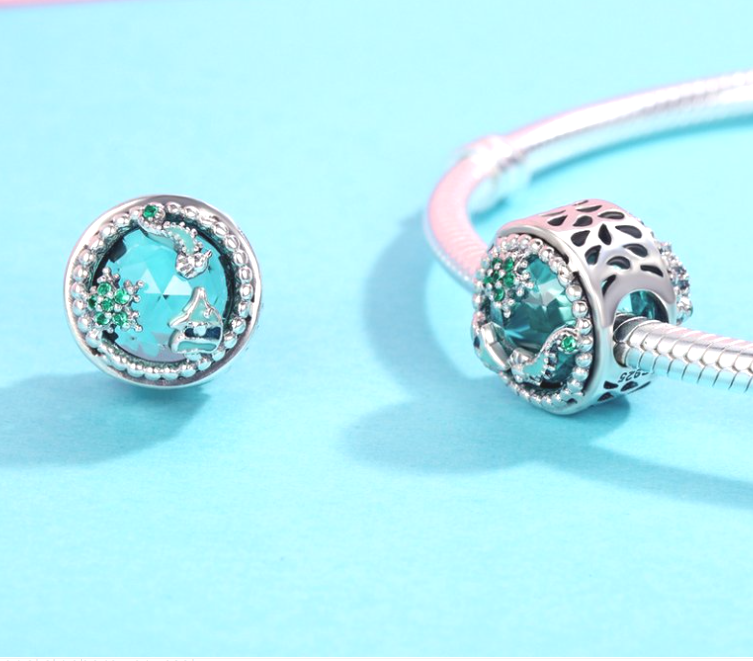 Charm Sterlingové stříbro 925 Průzračný oceán, korálek na náramek moře