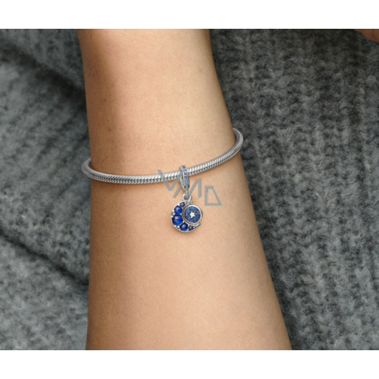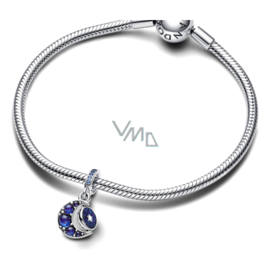 Charm Sterlingové stříbro 925 Půlměsíce s královskou modří, hvězdně modrým a světlíkově modrým krystalem, přívěsek na náramek vesmír