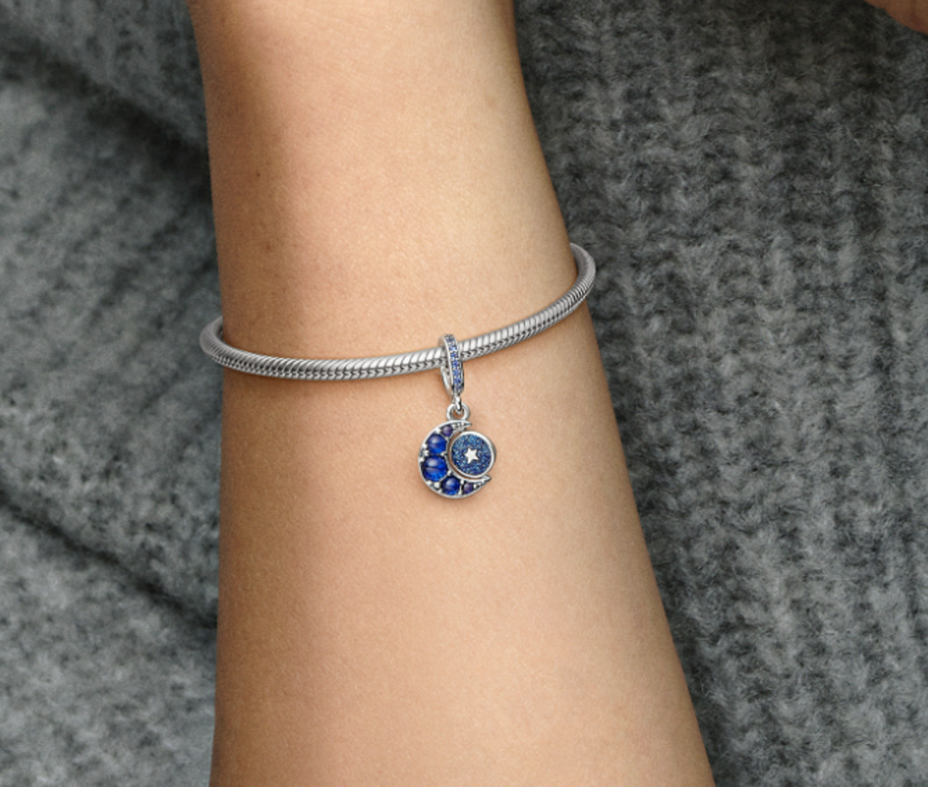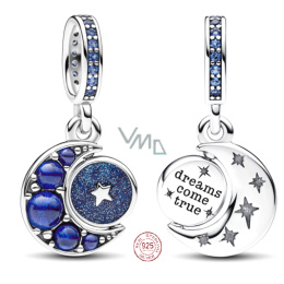 Charm Sterlingové stříbro 925 Půlměsíce s královskou modří, hvězdně modrým a světlíkově modrým krystalem, přívěsek na náramek vesmír