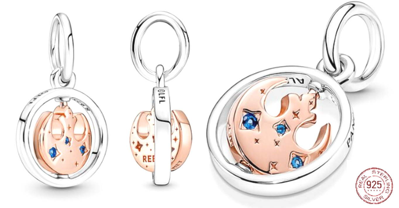 Charm Sterlingové stříbro 925 Marvel Star Wars Rebel Alliance se symbolem, otočný přívěsek na náramek, film