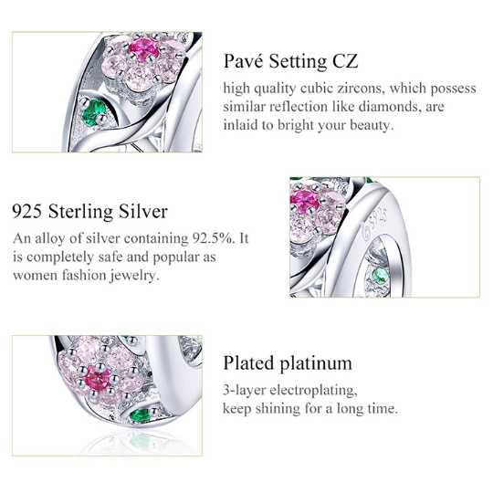 Úzký stříbrný korálek je po obvodu dekorován krásnými kvítky a lístečky, jenž zdobí nádherně se třpytící Zirkony. Tento okouzlující stříbrný korálek je perfektním dárkem pro Vás i Vaše blízké. Objednejte nyní a vytvořte si vlastní nezapomenutelné okamžiky, které si budete připomínat celý život. Mějte na paměti, že korálky nejsou úplně identické v důsledku ruční práce. Stříbrný korálek je kompatibilní pro náramky známých značek. Buďte originální, buďte jedinečná!