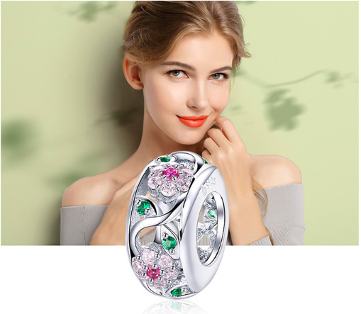 I navzdory všech rozmanitostí, celý život dokáže rozkvétat do krásy. Udržte si dobrou náladu ve svém srdci   Úzký stříbrný korálek je po obvodu dekorován krásnými kvítky a lístečky, jenž zdobí nádherně se třpytící zirkony. Tento okouzlující stříbrný korálek je perfektním dárkem pro Vás i Vaše blízké. Objednejte nyní ... více