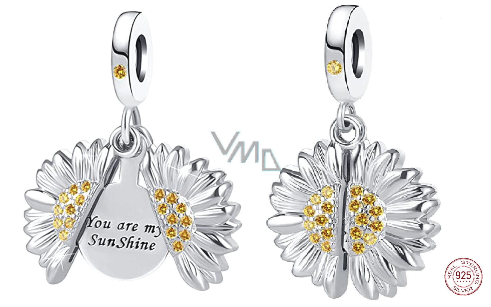 Charm Sterlingové stříbro 925 Rozkvetlá slunečnice s nápisem - Jsi moje sluníčko, otevíratelný přívěsek na náramek láska