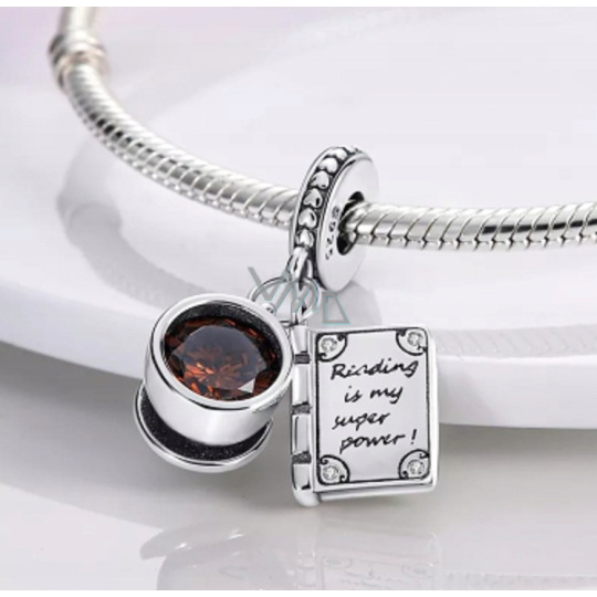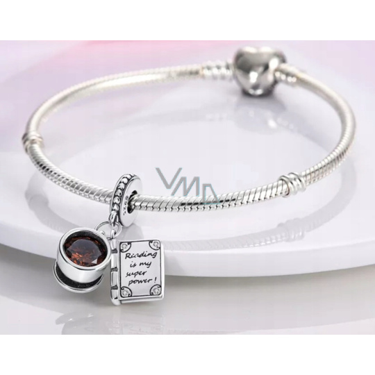 Charm Sterlingové stříbro 925 Šálek kávy + kniha, čtení je moje síla, 2v1 přívěsek na náramek, jídlo a pití