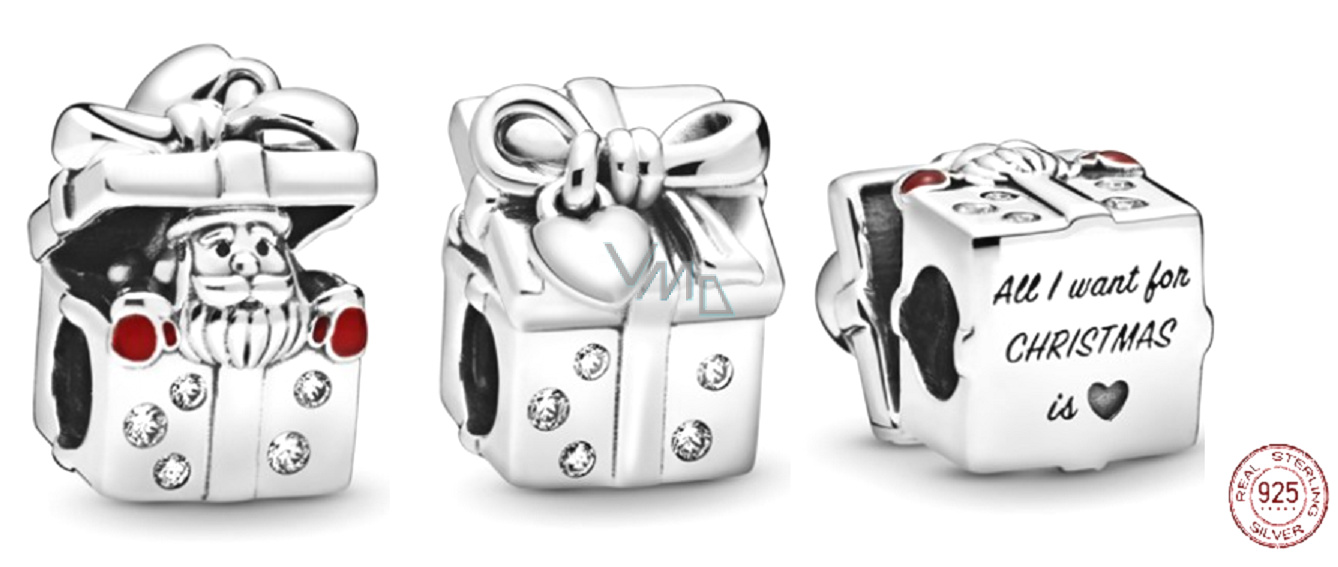 Charm Sterlingové stříbro 925 Santa v dárkové krabici, korálek na náramek Vánoce