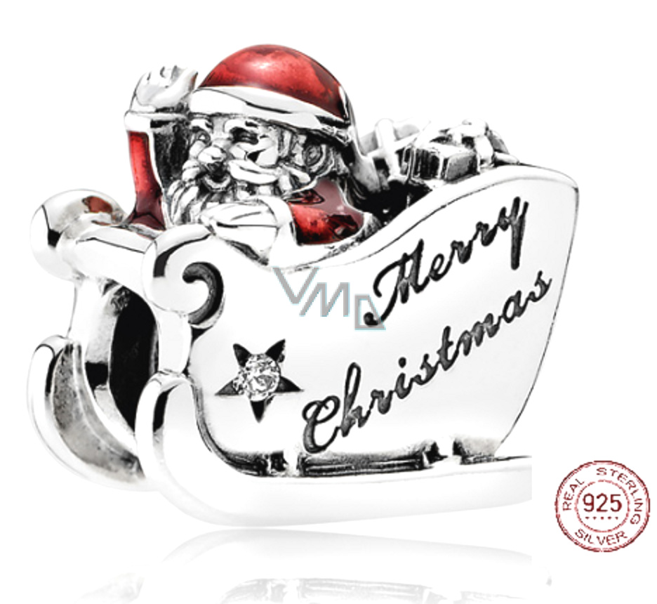 Charm Sterlingové stříbro 925 Santovy sáně, korálek na náramek Vánoce