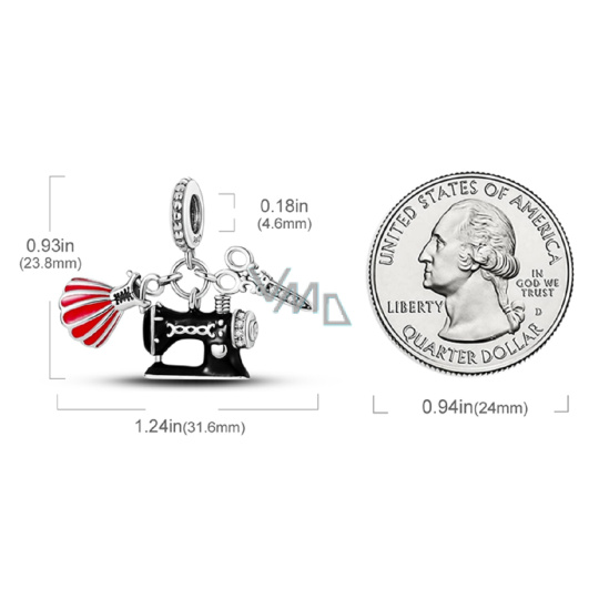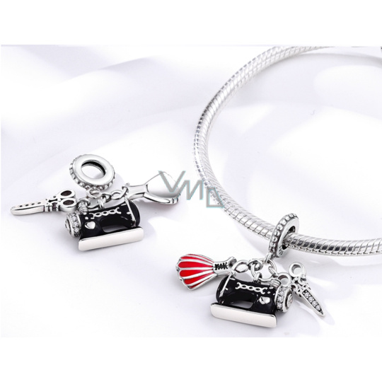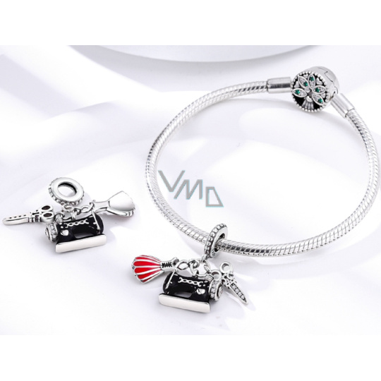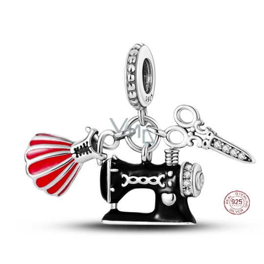 Charm Sterlingové stříbro 925 Šicí přívěsek - šicí stroj, šaty, nůžky 3v1, přívěsek na náramek zájmy