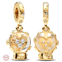 Charm Sterlingové stříbro 925 Sněžítko se srdcem a sněhovými vločkami, přívěsek na náramek vánoce