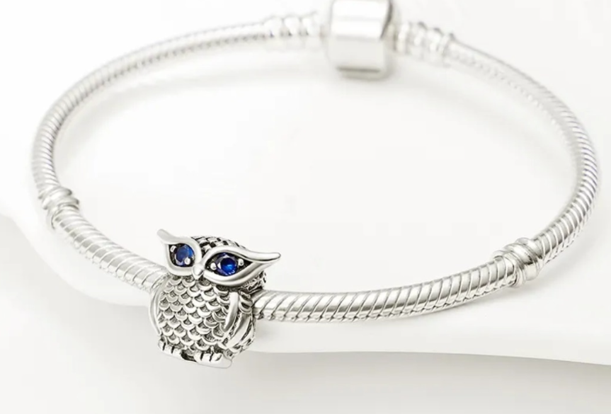 Sova je jedním z nejsilnějších nositelů moudrosti, ale je také představitelem magie. Detailně propracovaný korálek Sovy je vyhotoven ze stříbra a je dekorován Zirkony modré a čiré barvy. Mějte na paměti, že přívěsky nejsou úplně identické v důsledku ruční práce. Tento okouzlující stříbrný přívěsek je perfektním dárkem pro Vás i Vaše blízké.