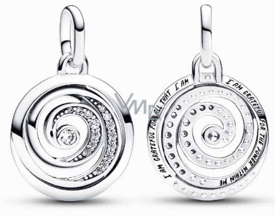 Není to nic lepšího než dobrá nálada, když nosíte přívěsek medailon Spirala. Tento spirálový přívěsek ze stříbra zdobí třpytivé kameny a propracované designové prvky včetně obrysu ve tvaru hranolu, výřezů a vyrytých linií, které vyjadřují „Jsem vděčná za vše, co jsem já, jsem vděčná za sílu uvnitř mě.“ Noste tento přívěsek se spirálovým medailonem na svém oblíbeném otevíracím článku jako symbol a oslavu sebeuvědomění, sebelásky a sebevyjádření.