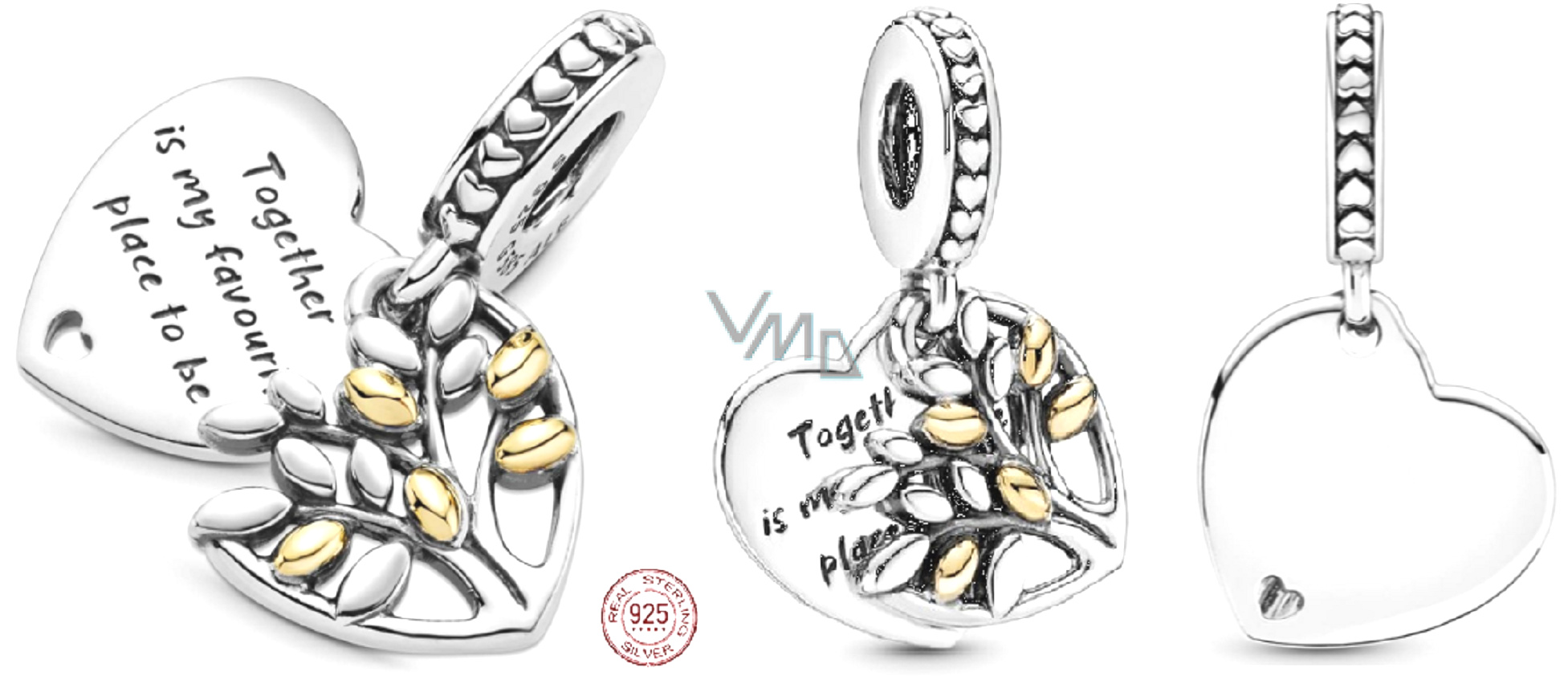 Charm Sterlingové stříbro 925 Srdce a strom života 2v1, přívěsek na náramek rodina