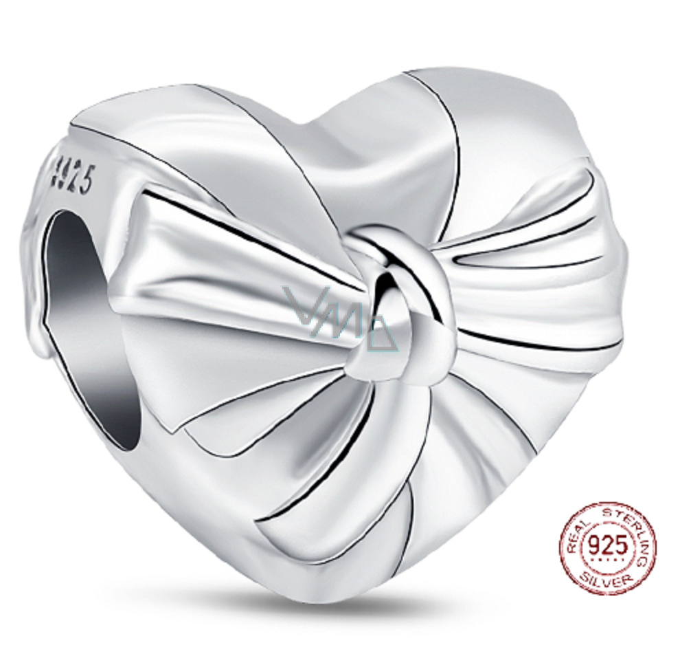 Charm Sterlingové stříbro 925 Srdce s oslnivou mašlí, korálek na náramek láska