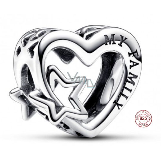 Charm Sterlingové stříbro 925 Srdce s propletenou hvězdou, korálek na náramek rodina