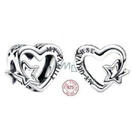 Charm Sterlingové stříbro 925 Srdce s propletenou hvězdou, korálek na náramek rodina