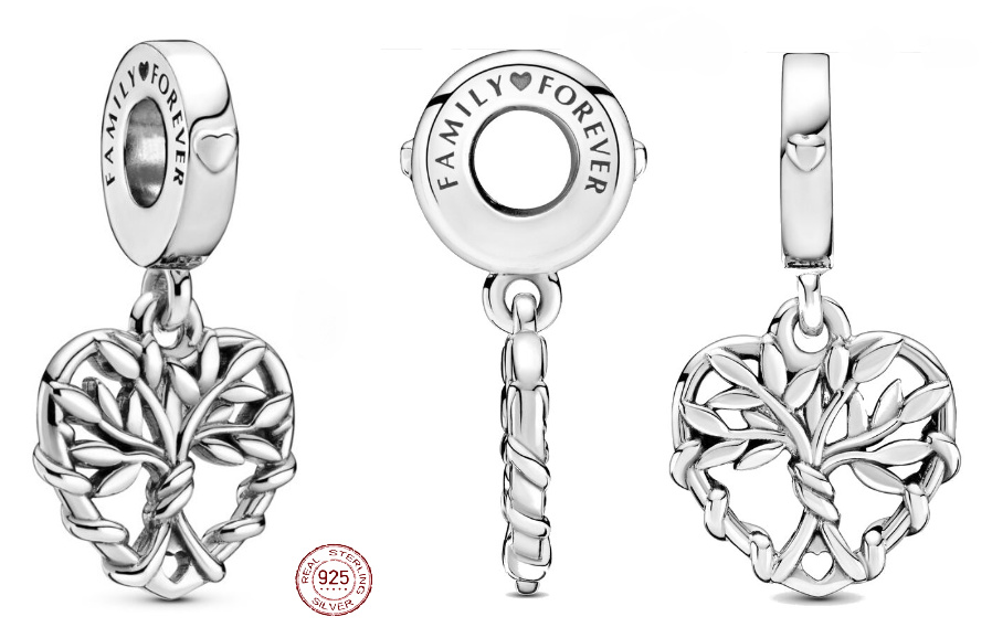 Charm Sterlingové stříbro 925 Srdce se stromem rodiny, přívěsek na náramek rodina