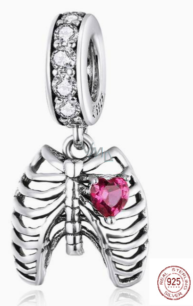 Charm Sterlingové stříbro 925 Srdce symbol lásky, odvahy, statečnosti, bojovnosti, sebeobětování, přívěsek na náramek láska