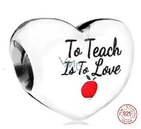 Charm Sterlingové stříbro 925 Paní učitelce - učit s láskou, korálek srdce na náramek láska