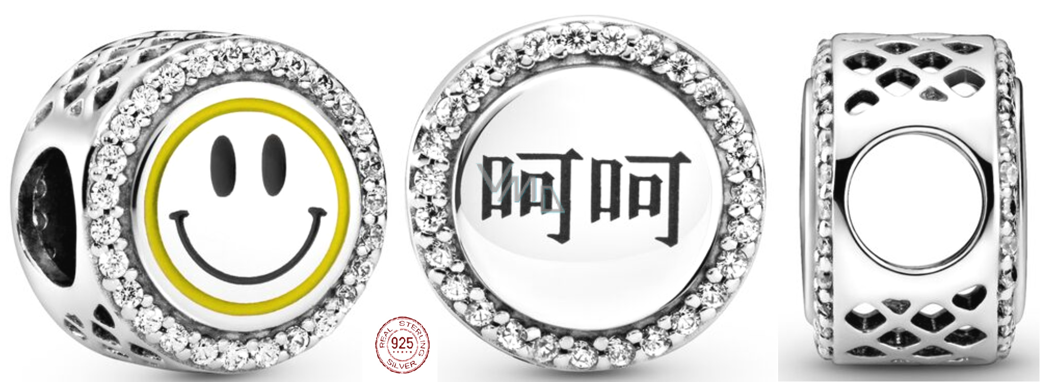 Charm Sterlingové stříbro 925 Talisman jiskřivý smajlík, korálek na náramek symbol
