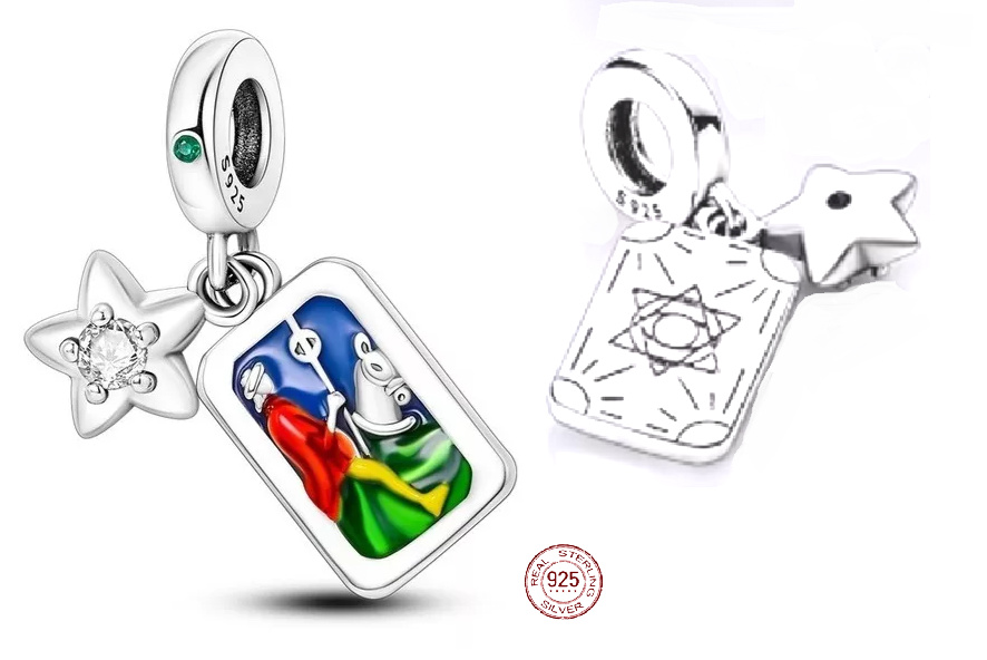 Charm Sterlingové stříbro 925 Tarotová karta a kouzlo hvězdy! 2v1 přívěsek na náramek symbol