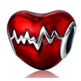 Charm Sterlingové stříbro 925 Tlukot srdce červená glazura, korálek na náramek láska