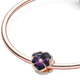 Charm Sterlingové stříbro 925 Tmavě fialová maceška, korálek na náramek květina