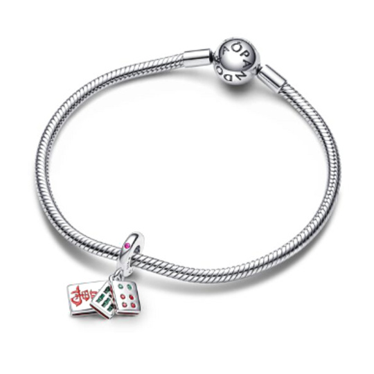Charm Sterlingové stříbro 925 Tři dlaždice Mahjong 3v1, přívěsek na náramek symbol