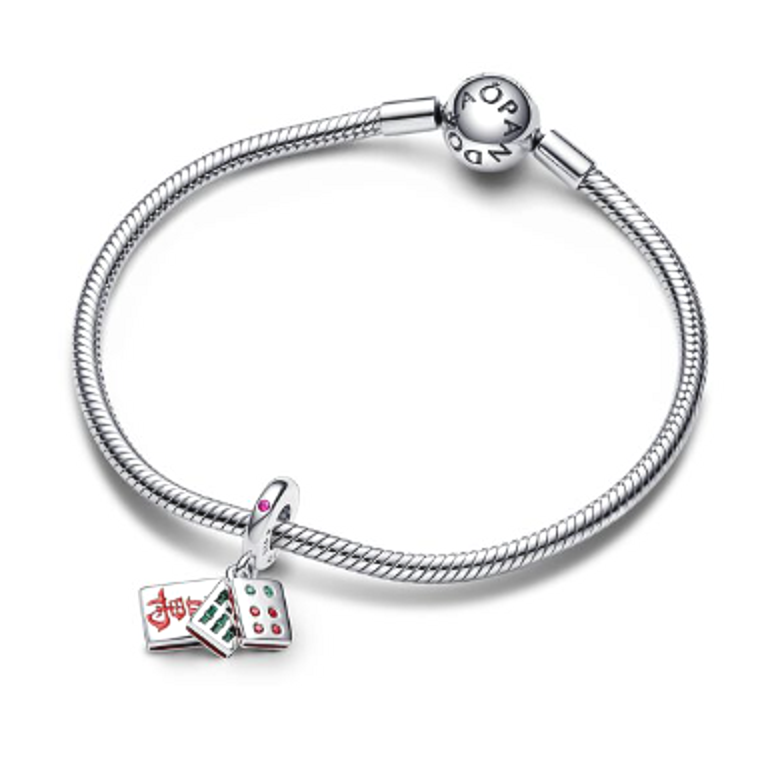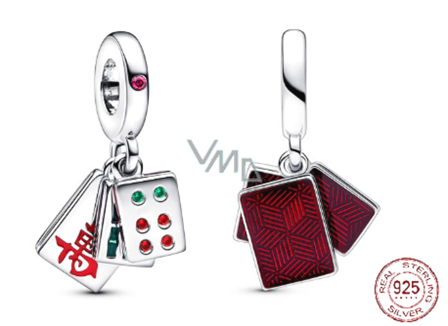 Charm Sterlingové stříbro 925 Tři dlaždice Mahjong 3v1, přívěsek na náramek symbol