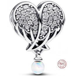 Vzdejte hold svým andělům s přívěskem Třpytivá andělská křídla jako srdce. Tento přívěsek je navržen tak, aby povznášel a inspiroval. Je osazen 68 kulatými čirými zirkoniemi s briliantovým brusem. Tento přívěsek, který jedinečně doplní vaše stříbrné přívěsky, je ještě výjimečnější díky bílému laboratorně vytvořenému Opálu visícímu ze sady křídel ve tvaru srdce. Dojemná pocta všem andělům, kteří nad námi bdí.