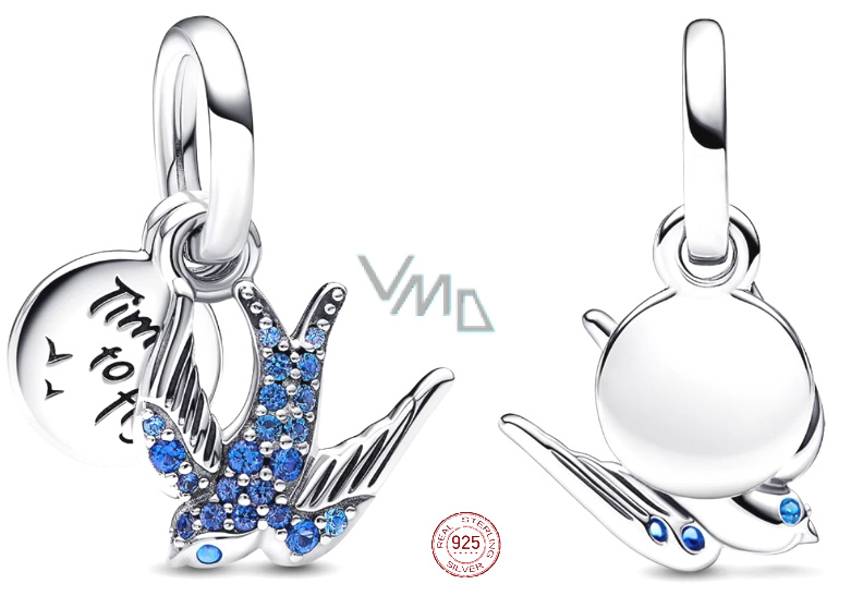 Charm Sterlingové stříbro 925 Třpytivá vlaštovka a citát, 2v1 přívěsek na náramek zvíře