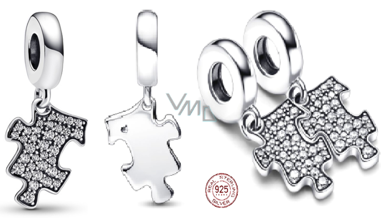 Charm Sterlingové stříbro 925 Třpytivý dílek puzzle, přívěsek na náramek přátelství
