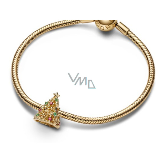 Charm Sterlingové stříbro 925 Třpytivý vánoční stromeček zlatý, korálek na náramek vánoce