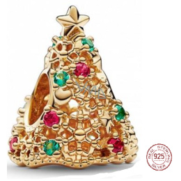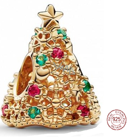 Charm Sterlingové stříbro 925 Třpytivý vánoční stromeček zlatý, korálek na náramek vánoce