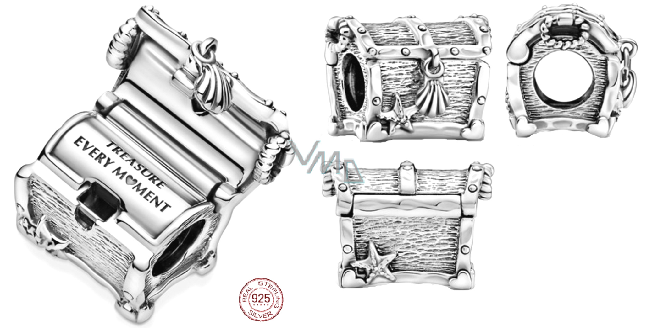 Charm Sterlingové stříbro 925 Truhla s pokladem, korálek na náramek symbol