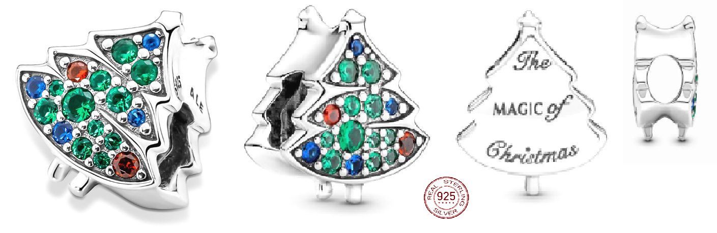 Charm Sterlingové stříbro 925 Vánoční stromeček, kouzlo vánoc, korálek na náramek Vánoce