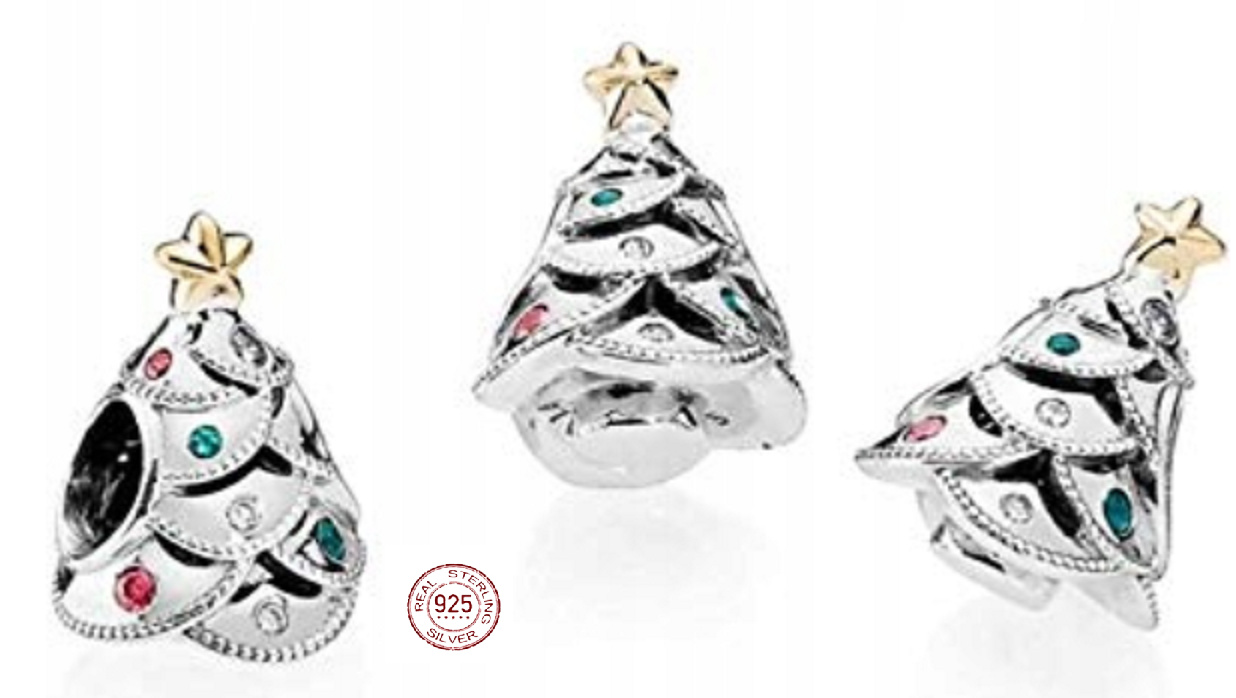 Charm Sterlingové stříbro 925 Vánoční stromeček stříbrný, korálek na náramek vánoce