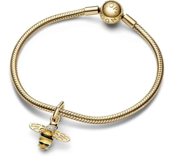 Ukažte, že jste královna s tímto přívěskem. Tento přívěsek jemně pozlacený, má dutá křídla, která mu dodávají život. Tělo Včely je vyrobeno ze žlutého kabošonu syntetického křišťálu pokrytého smaltovanými proužky, které přívěsku dodávají zlatou medovou barvu, když na něj svítí světlo. Mezi včelími křídly se třpytí čiré kubické zirkonie. Tento přívěsek, navržený tak, aby symbolizoval moudrost, hojnost a znovuzrození, dává vašim šperkům dotek síly přírody.