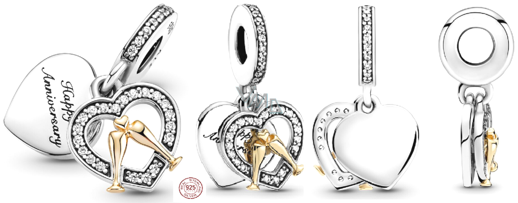 Charm Sterlingové stříbro 925 Všechno nejlepší k výročí, 2v1 přívěsek na náramek výročí