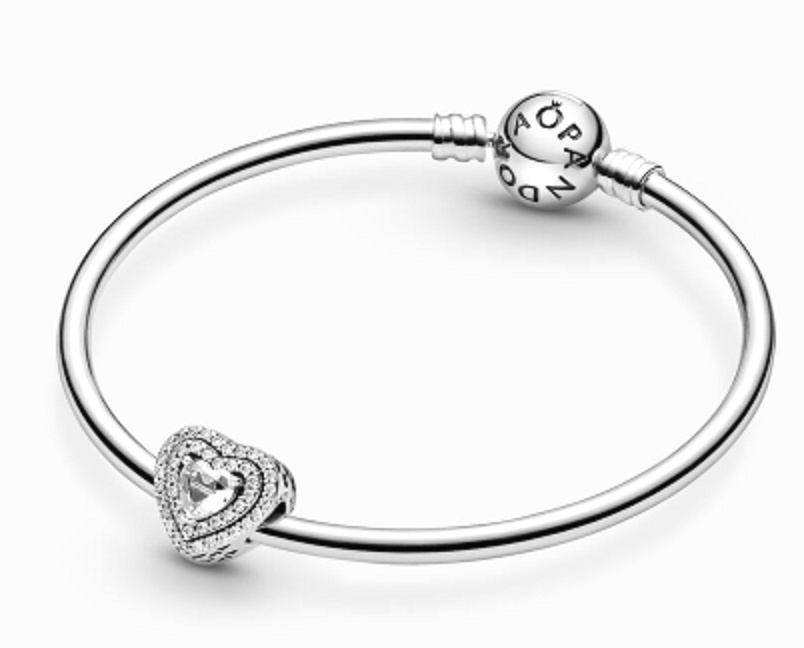 Šiřte lásku s tímto jiskřivým srdcem. Šperk ručně vyrobený ze stříbra 925 Sterling Silver má uprostřed vyražený kámen ve tvaru srdce obklopený dvěma řadami bezbarvých kamenů. Konec okraje zdobí vzor s vyřezávanými srdíčky. Noste přívěsek na svém oblíbeném náramku spárováním s dalšími jednoduchými přívěsky ze stříbra 925 pro oslnivý vzhled, který nezůstane bez povšimnutí.