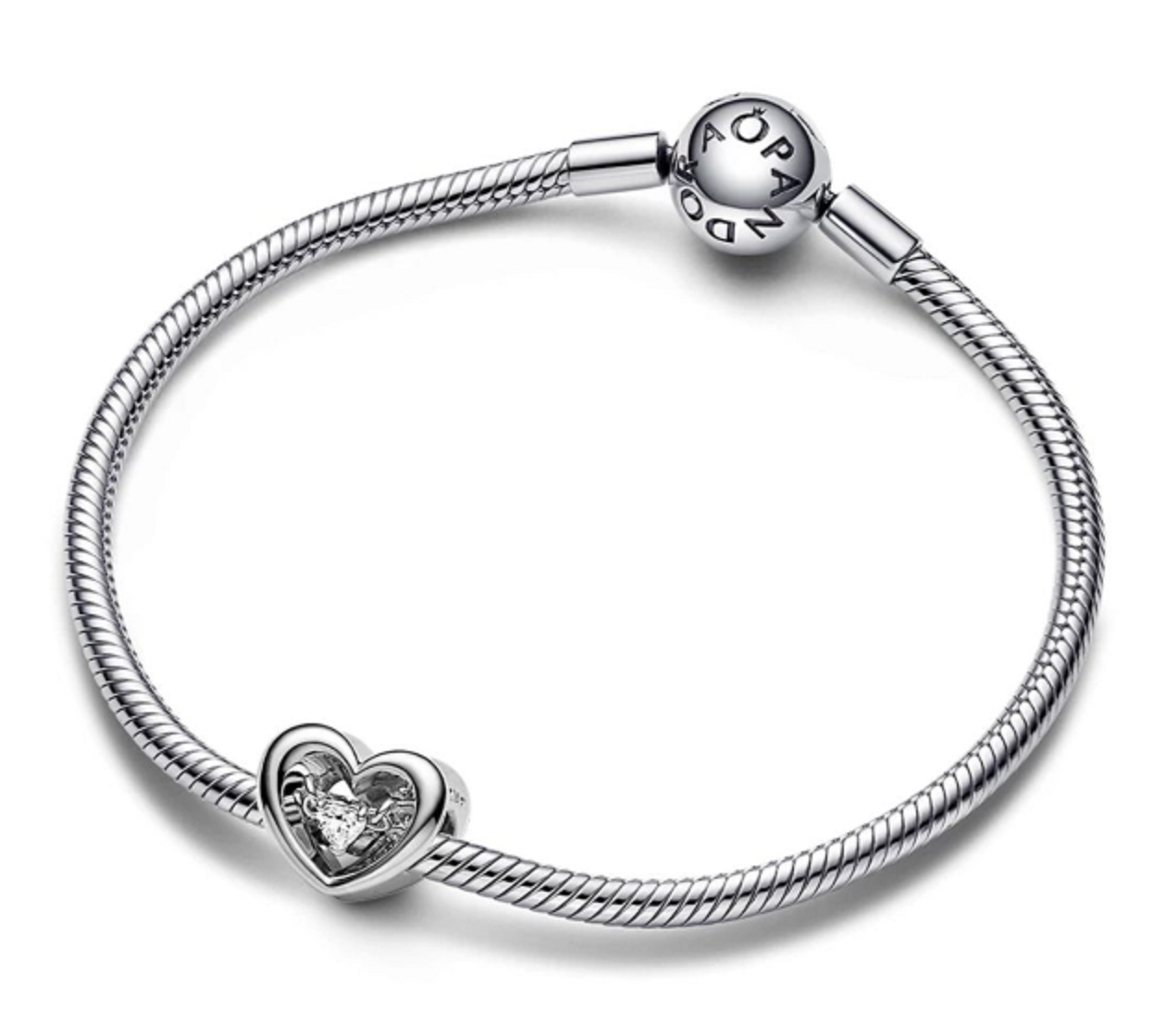 Charm Sterlingové stříbro 925 Zářivé srdce a plovoucí zirkon, korálek na náramek láska